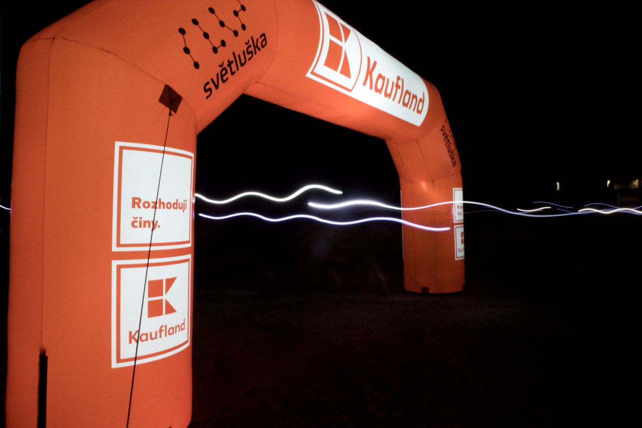 Abychom podpořili vizibilitu klienta i na trati běhu, navrhli a vyrobili jsme podsvícenou bránu a trička pro dobrovolníky. Podsvícenou bránu na trati doplnily hostesky se světelnými prvky, které povzbuzovaly a zároveň navigovaly účastníky.